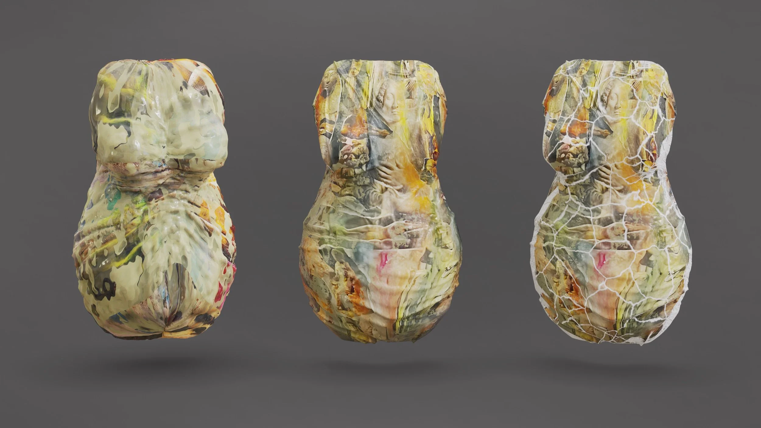 Sferistic Bodys of Wax I - III. Those artworks can be visualized in Augemted Reality with a Smartphone, without any App.